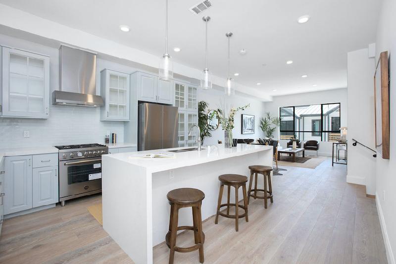 These two- and three-bedroom homes embody the character and authenticity of the neighborhood through their unmistakable design and quality while also offering a prime location just south of Sunset Boulevard. Features include Bertazzoni appliances, complete smart home integrations, engineered hardwood flooring, custom cabinetry, and quartz countertops.