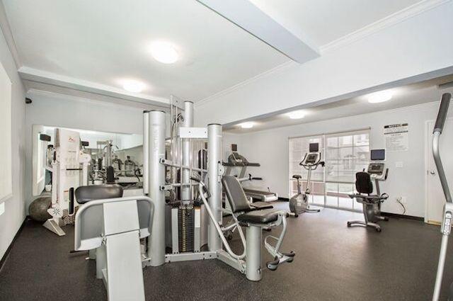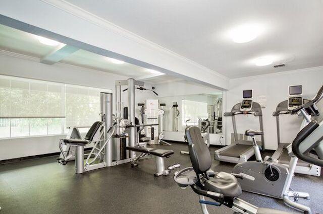 Amenities at Dickens Oaks include controlled access, a sparkling pool, a well-equipped gym, a recreation room, and secure parking.