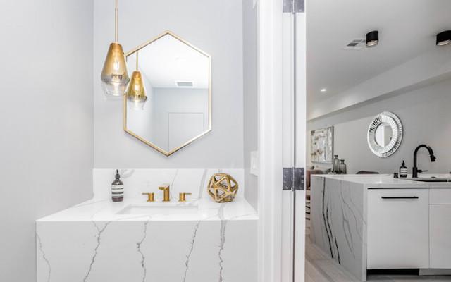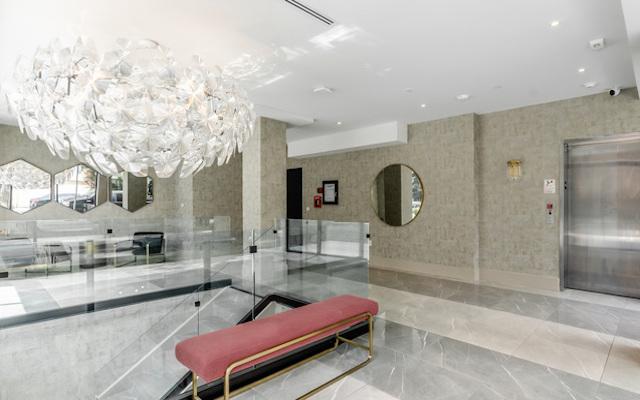 Every unit has its own private balcony, custom built in closets, and features high ceilings, with expansive city views. Every unit has a tastefully designed powder room with beautiful designed wall paper. They also offer access controlled garage parking, a separate mail room, a bicycle repair station in the garage, and a Gym for all to safely enjoy. The Doheny was designed high-end and tastefully done, offering its unique and different experience.