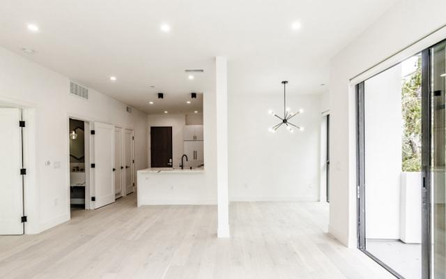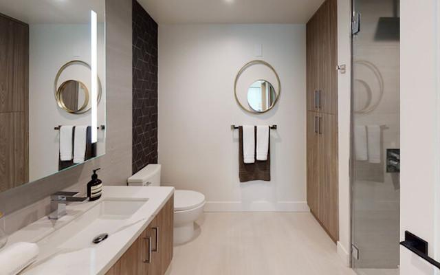 The Doheny thoughtfully balances contemporary high-end amenities, bright spaces and an open-style well-thought out floor plan. The attention to detail, design and quality is apparent in every apartment. Each of the 35 apartments and penthouses boasts impeccable features, cream wood flooring throughout and a neutral color palette finishes. The well-appointed kitchen includes Viking gas stainless steel appliances, built in refrigerator/freezer, custom cabinetry, smokey glass backsplash, and stunning quartz countertops. They offer premium bathroom fixtures, double master vanity & beautifully tiled bathrooms & showers.