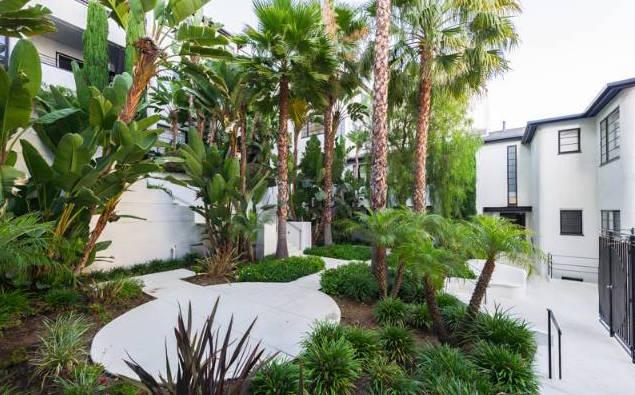 Doheny Sunset Apartments offers 16 units on 3 floors with two and three bedroom plans ranging from 1,900 square feet up to 2,500 square feet. The residences feature high ceilings, crown moldings, dark hardwood floors, large living rooms with fireplace, formal dining room, inside laundry and private patios. The cooks kitchens include stainless steel appliances, granite counters and marble backsplashes. The bathrooms boast beautiful pedestal sinks, marble showers and satin nickel or chrome fixtures.