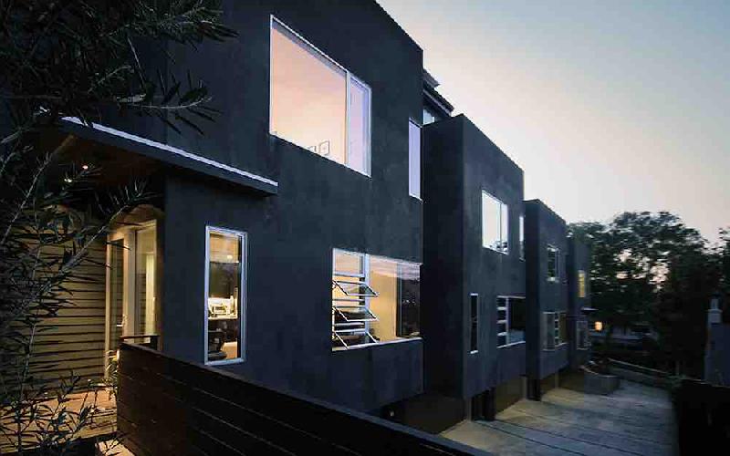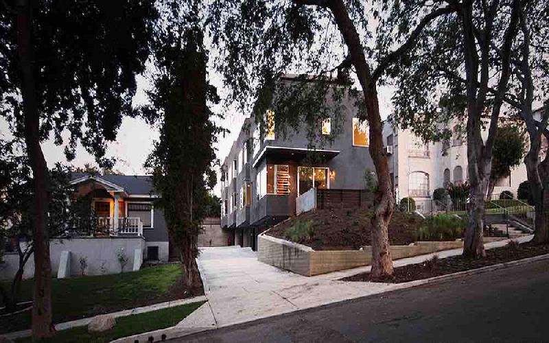 Edgecliffe Terrace, built in 2012, is a modern interpretation of the mid-century modern aesthetic. The project reflects its location in Silver Lake, the eclectic los angeles neighborhood where MCM masters including Neutra, ain, Shindler, and Lautner all worked.