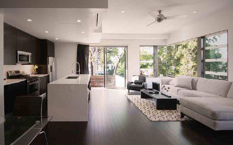 Although focused on details and connections and incorporating key elements including corner glass, natural cedar siding, and metal exterior accents, the project remains a traditional development with straightforward construction means and methods. The project employs extensive sustainable elements and features including solar photovoltaic systems, high performance envelopes, renewable and low/no VOC finishes, passive solar orientation, water efficient landscaping, and a pedestrian focus.