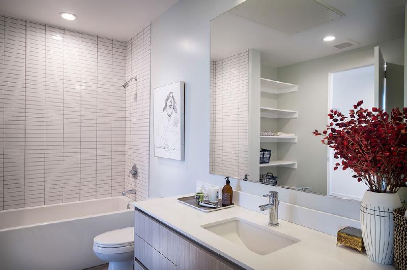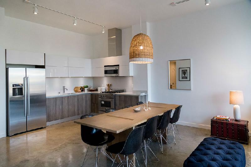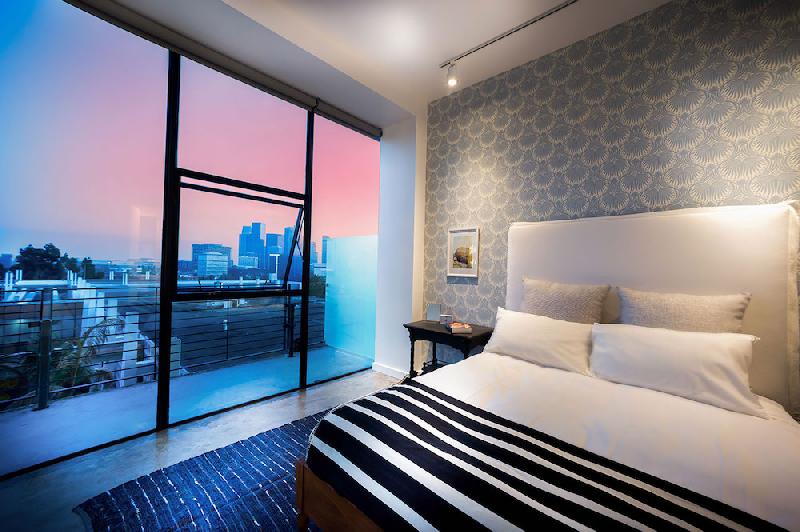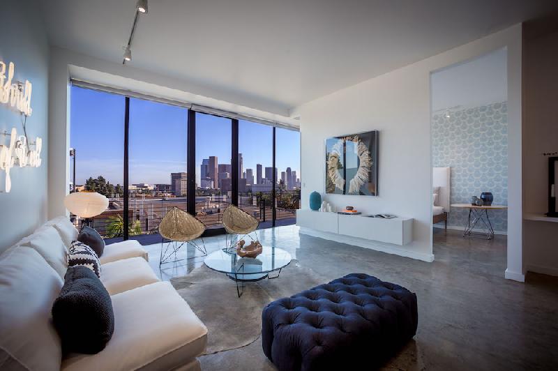 The large exterior deck has been thoughtfully designed to take full advantage of the warm Los Angeles weather. You can relax in the cabanas, enjoy the stars in the sky by the fire pit or start the day with a good stretch using the yoga deck. A large outdoor kitchen offers residents the option of al fresco cooking. And full Wi-Fi connectivity provides residents the opportunity to meet friends or schedule business meeting while luxuriating in the outdoor oasis conceived by Ilan Dei Designs.