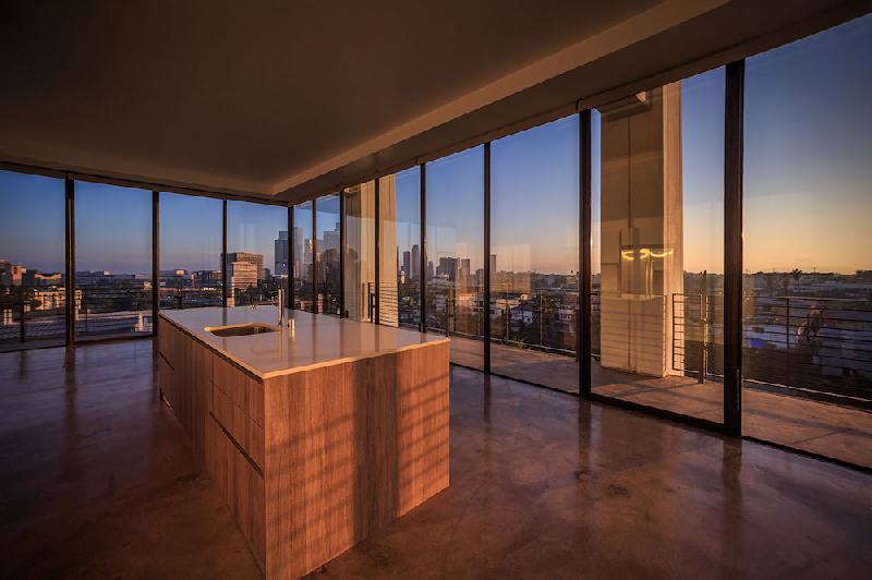 The Elysian, built in 1972 and reborn in 2014, is an aesthetic marvel. Set amidst a neighborhood of low-rise buildings in Victor Heights adjacent to Echo Park, The Elysian affords its residents breathtaking views in all directions. The original building design is characterized by clean lines and wrap around balconies. The four distinctive pillars on the west and east elevation of the building are characteristic of Pereira’s best work. The twelve foot floor height is in perfect proportion to the overall massing of the structure. The near-seamless glass floor-to-ceiling class façade provides natural light deep into the floor plate.