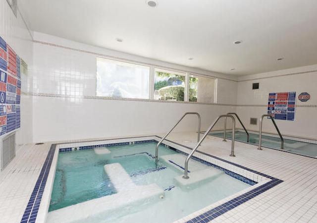 Amenities include resort-style pool, two indoor spas, two steam rooms, fitness center, clubhouse, beautifully landscaped grounds and courtyard areas, and security gates and access.