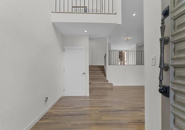 The townhomes feature grand double door entry, high ceilings, dramatic skylight windows, distinctive open staircases, stylish fireplaces in the living rooms and formal dining room with wet bar The spacious kitchens feature ample cabinet space, island with range top, built-in desk and a large breakfast area. The master suites boast volume ceilings, dressing area with makeup vanity and great closets. The master baths include stall shower, double sink vanity, and soaking tub. There is also a laundry area in the private two car garage.