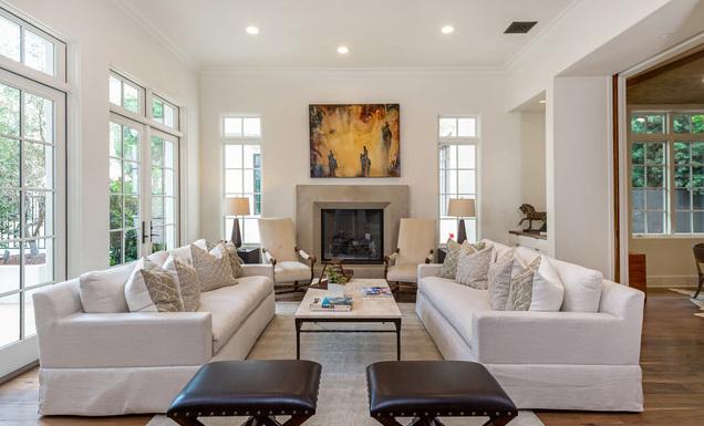 - Formal Living Rooms with 12’ Custom Detailed Ceilings, Fireplaces and Wet Bars