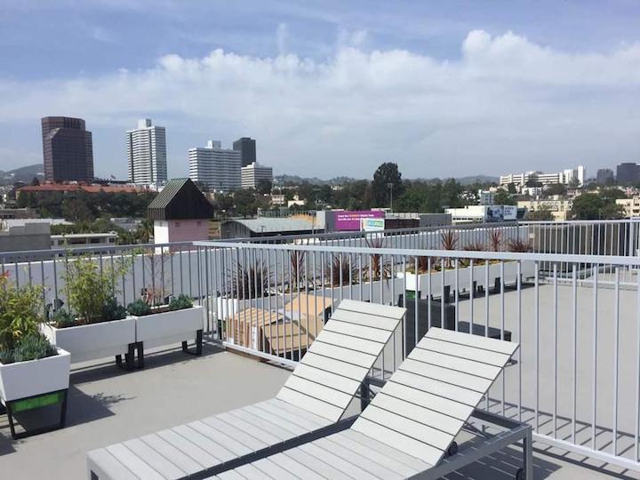 This bold and unique contemporary building is situated on a corner lot and stands higher than any of its neighbors, offering 360 views of the West Los Angeles skyline from its fully furnished rooftop decks. The roof contains 6 separate deck areas, each measuring 600 square feet. The apartments feature luxury Italian tile and marble, open kitchen plans, stainless steel European appliances and in-unit washer/dryers. Residents enjoy oversized balconies and over 4,500 square feet of landscaped open space in the side yards and rooftop.