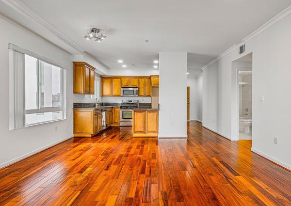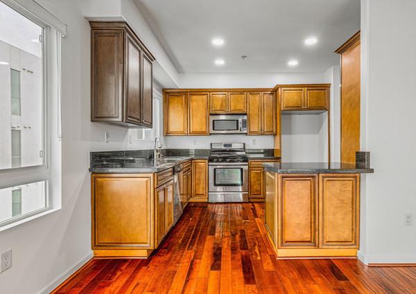 Fedora Villa offers 20 units on 4 floors with two and three bedroom layouts ranging from 1,000 square feet up to almost 1,500 square feet. They feature open floor plans and gourmet kitchens with granite countertops, stainless steel appliances and wooden cabinetry. They offer spacious living rooms with balcony access, wood flooring, crown and base molding and recessed lighting throughout.