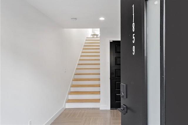 Flower Lane offers 6 homes, available in three bedroom layouts, ranging around 2,000 square feet. They feature incredible open living spaces flooded with natural light and beautiful engineered flooring throughout. Enter through the front door or through the private 2 car garage with direct access. The first levels feature a generously sized office area that can also be used as a guest room. Upstairs is the gourmet kitchen with a large island, stainless steel appliances, quartz countertops and custom cabinetry. The living room, dining room, a balcony, powder room and laundry room. The third level includes 2 guest bedrooms and bathroom, a study area and the master suite with a walk-in closet and master bath with dual sinks.