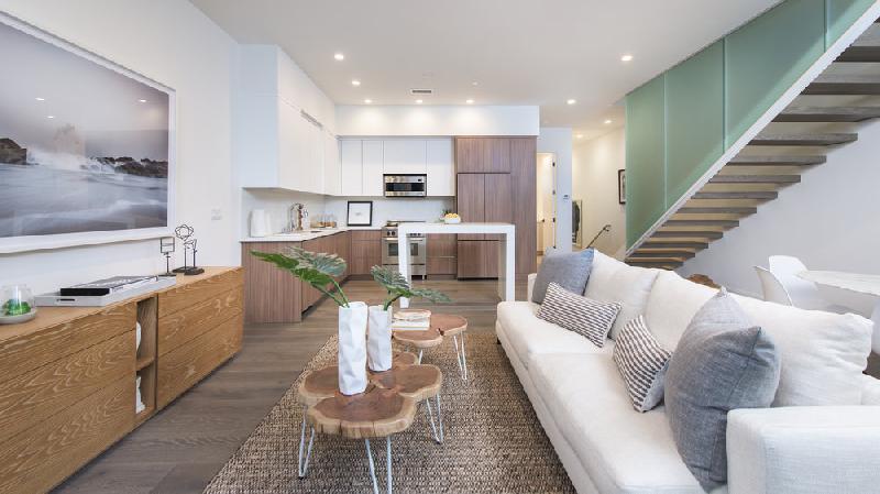 Formosa Five offers 5 units on 3 floors, with 3 architectural floor plans to choose from. The three plans include three 1,600 square foot 3 bedroom, 3 baths with 2 car garage, one 1,600 square foot 2 bedroom, 2 bath + 2 car garage and one 1,300 square foot 1 bedroom + den with 3 baths, 1 car garage and private yard. Each residence features private rooftop terrace with kitchenette and views of Runyon Canyon, Griffith Observatory, DTLA & Century City. These designer homes feature top of the line designer finishes, 10 foot floor to ceiling windows, wide plank oak wood floors and chef’s kitchens with custom cabinets, Caesarstone counters and high end appliances.