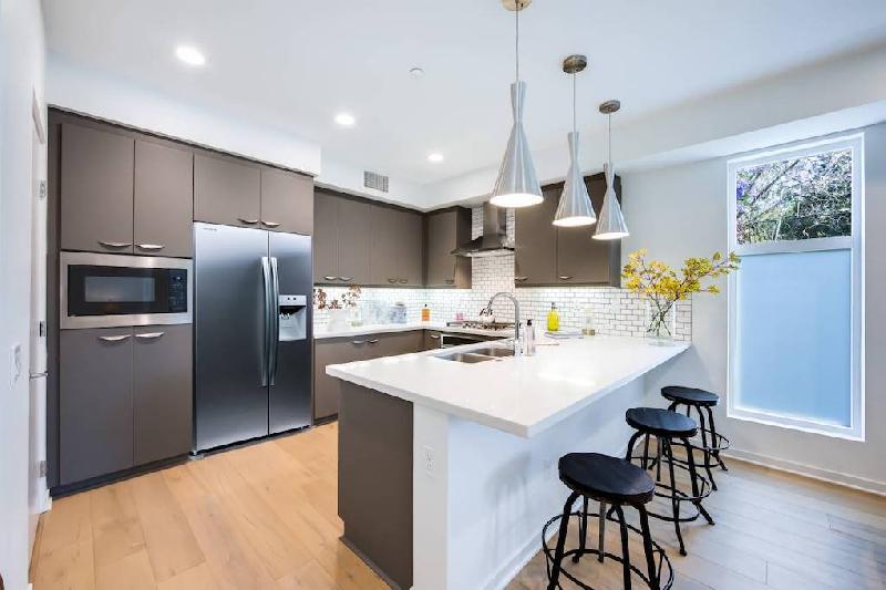 Gallery offers 16 residences built under LA's small lot division ordinance. These structurally-independent, three-story homes feature three en-suite bedrooms, 3.5 baths, an attached direct access two-car garage and private patio area. The second levels are bright and open and includes a gourmet kitchen, dining area and great room with balcony. Modern amenities include custom cabinetry, Quartz countertops, stainless steel appliances, European Oak plank flooring and designer fixtures.