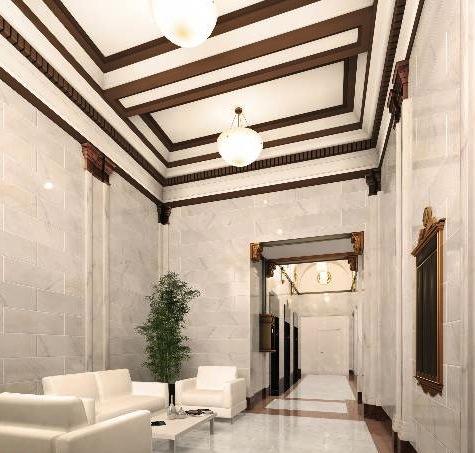Graceful and modern aesthetics are blended with original brick walls and accents. The grand vestibule and lobby is covered in impressive white italian marble. A terraced rooftop retreat with open air spa and workout room exemplifies the new Angelino lifestyle and earns this building a unique place in the rebirth of Broadway and Downtown.