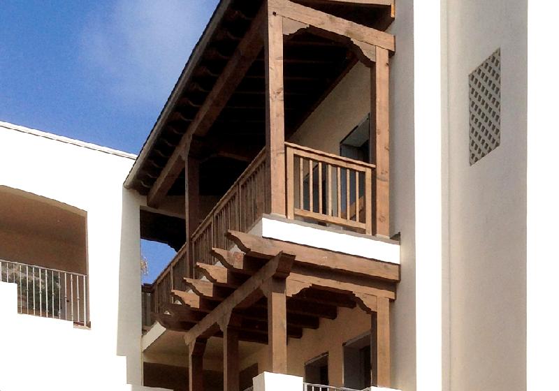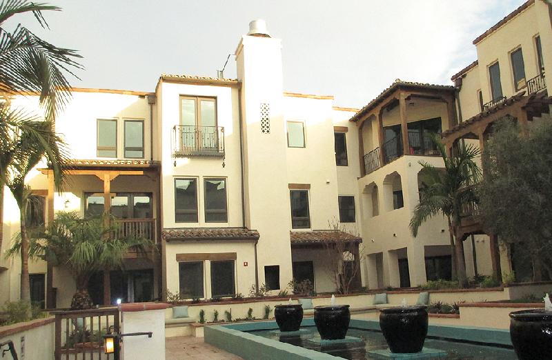 - Landscaped tile courtyards and fountains