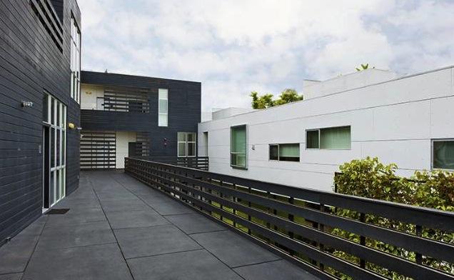 Habitat 825’s own interlinked “L” masses promote a brand of integrated living that follows in the same vein set by Schindler over 80 years ago. Measures were taken to preserve the Schindler House’s relationship with its landscape. Habitat 825’s section fluctuates in height to avoid casting direct shadows, and its plan bends inward to open up along the bordering property line to allow breathing room.