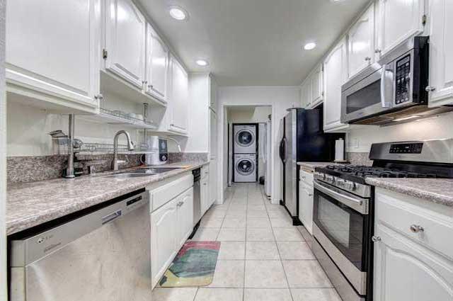 Hancock Park Villas offers 16 units on 3 floors with two bedroom layouts ranging from 1,100 square feet up to 1,700 square feet. They feature high ceilings throughout, large living room with fireplace and wet bar, clerestory windows, recessed lighting, in-unit laundry and private balcony or patio. Many of the units have been extensively upgraded with hardwood floors, granite countertops and stainless steel appliances.