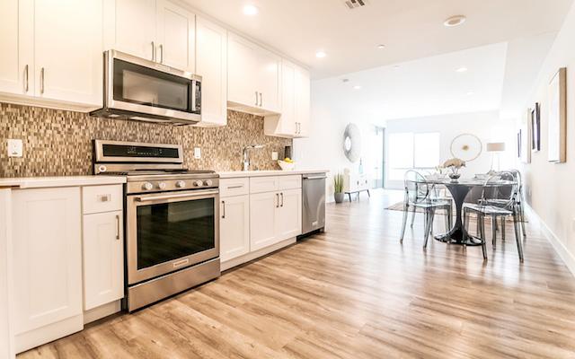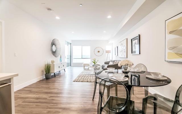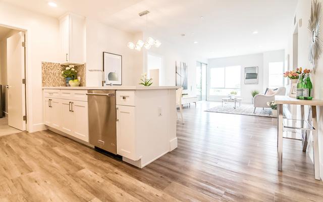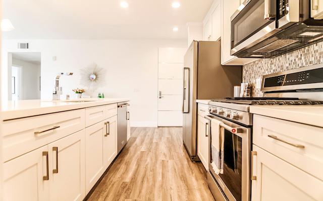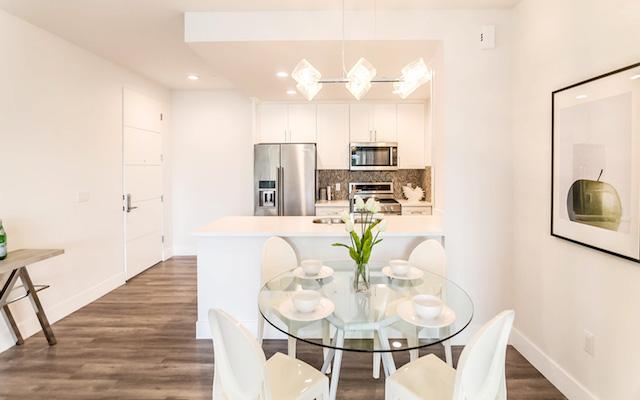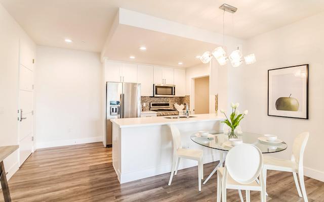 Harvard Regency offers 40 units on 5 floors with exceptional open floor plans ranging from just under 1,200 square feet up to almost 1,400 square feet. They feature high ceilings, recessed lighting, hardwood floors and large outdoor spaces. The kitchens feature stainless steel Kitchen-Aid appliances, Moen Faucets and Quartz countertops. The master suites boast great closet space and large master bath with dual vanities and Quartz countertops.