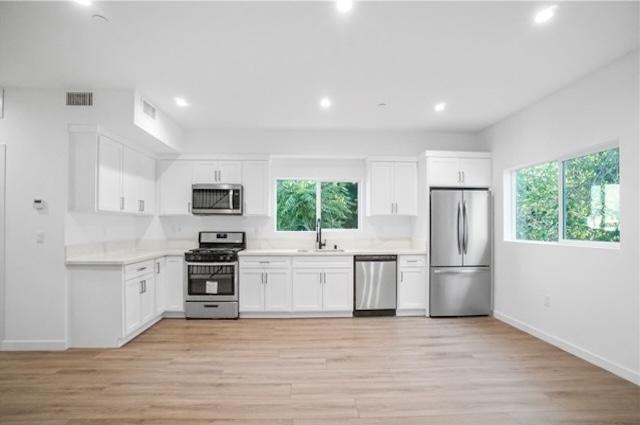 One of the standout features of Hazelhurst 5 is its abundant natural light, thanks to oversized windows in each corner-unit home, offering breathtaking views of the San Gabriel Mountains and Hollywood Hills. The kitchens seamlessly blend style and function, featuring ample cabinetry, quartz countertops, and stainless steel appliances. Every home includes an LG stackable washer and dryer for added convenience, with an optional upgrade to the Café from GE appliance package for a gourmet cooking experience.