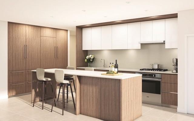 Gourmet Kitchens Premium, integrated appliances, including a stainless-steel gas cooktop and wall-mounted oven, make every home at Hope + Flower fit for a chef. Sophisticated Caesarstone countertops, overheight backsplashes, and contemporary cabinetry exude style and quality.