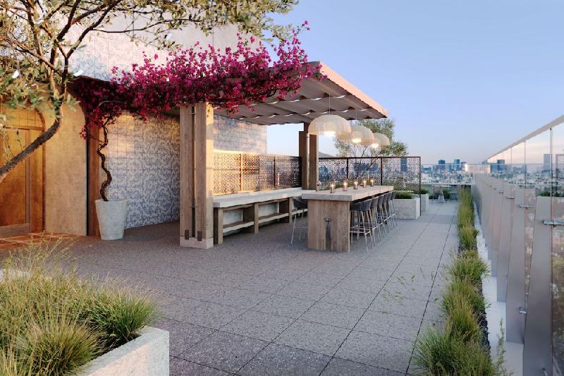 Stepping through Jardine’s impressive porte-cochère entrance on DeLongpre Avenue transports you to an intimate oasis where every corner feels a bit like a hideaway. Distinct details invoke a nod to Hollywood’s casual glamour juxtaposed with modern amenities like 24/7 valet, concierge services, and a stunning rooftop pool.