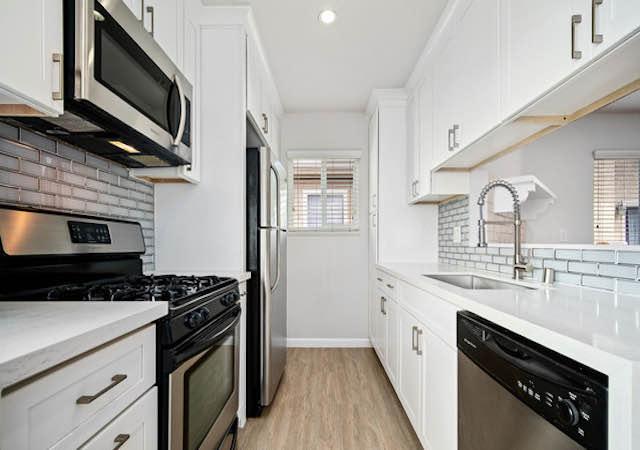 Jasmine Palms offers 20 units on 2 floors with one and two bedroom layouts ranging from 660 square feet up to 970 square feet. They feature a fireplace in the living room, private patios and an abundance of storage. Many of the units have been upgraded with hardwood floors, granite countertops and stainless steel appliances.