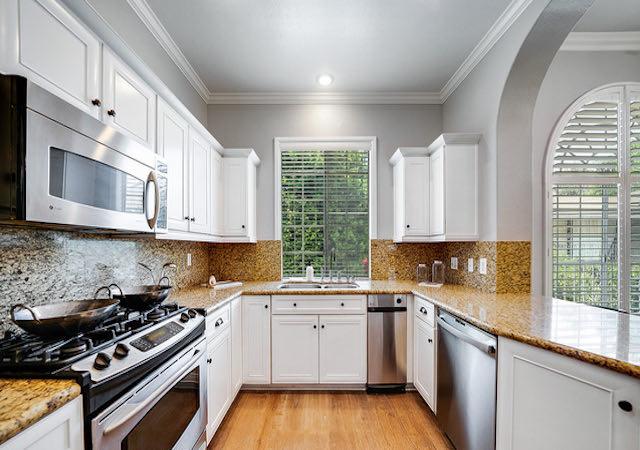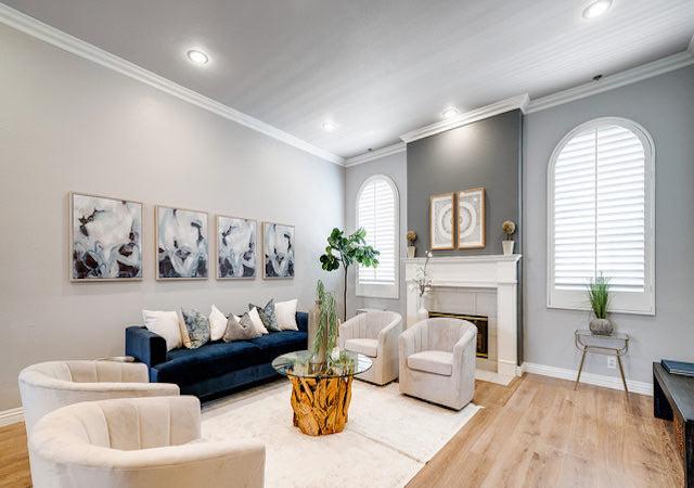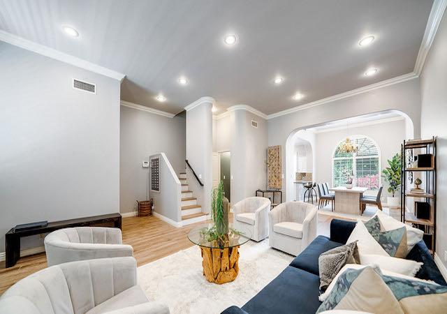 Landmark Villas offers 8 townhouses available in 3 bedroom layouts ranging from 1,600 square feet up to 2,150 square feet. They feature soaring ceilings in the living room, a fireplace, open kitchens, in-unit laundry and private garages. They also boast unique arch details throughout, in the doorways and windows, which is rarely found in condominiums.