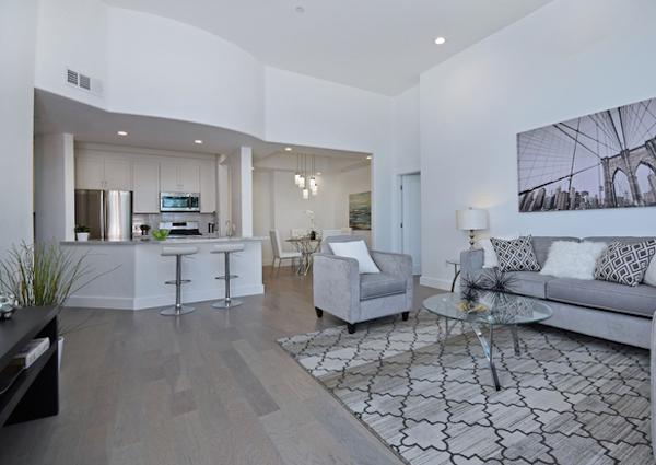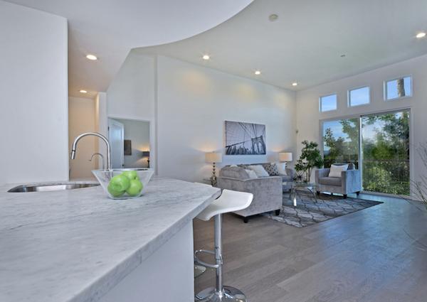 Laurel Palms Valley Village offers 19 units on 3 floors with single and multi-level two bedroom units ranging between 1,200 and 1,300 square feet. They feature architectural touches throughout, open layouts, formal living room with fireplace, formal dining rooms, gourmet kitchens with breakfast bar and in-unit laundry. The penthouse residences boast soaring ceilings, and clerestory windows.