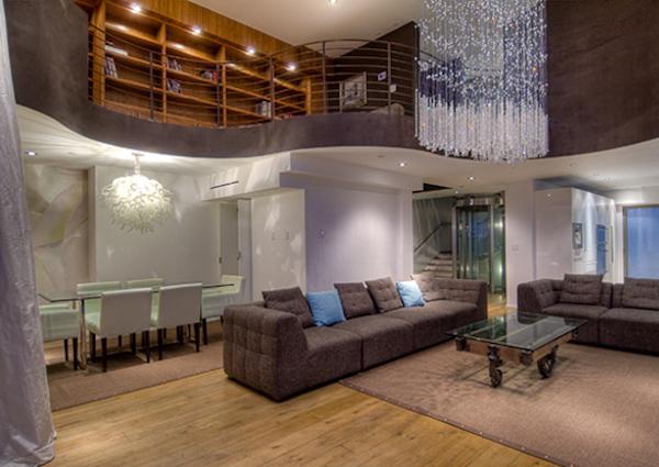 Le Blue offers 5 three bedroom residences ranging around 3,500 square feet. These European contemporary homes boast state of the art equipment, soap stone counters, imported oak floors from France, a wine cellar, theater, home automation, 17 foot ceilings and a glass elevator which stops on each floor and takes you from your private 2 car garage to your own rooftop deck. Room service, a concierge and exclusive membership can be provided by the Loews Hotel.