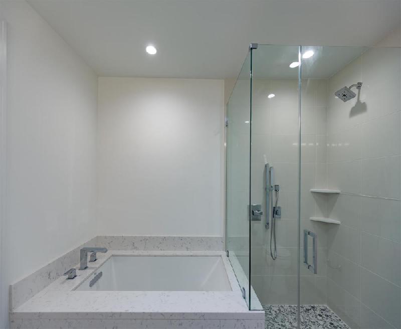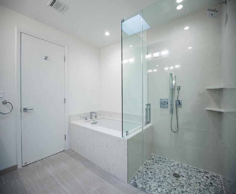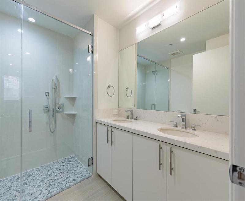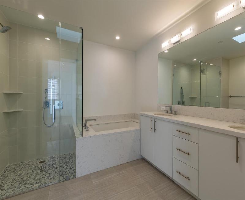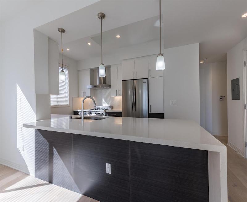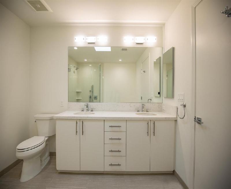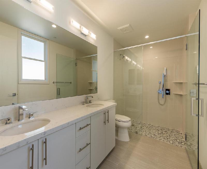 Le Robaire offers 9 units on 4 floors with two and three bedroom plans ranging from 1,000 square feet up to 1,800 square feet. There are only two units per floor except for the first floor which has three units. The units feature estate quality finishes throughout, high ceilings, custom thermofoil finish Renolit Covaren cabinets, french oak floors, porcelain tiles by MSI, in-unit laundry and private patios. The master suites feature walk-in closets and luxurious master baths with dual sinks, soaking tub and separate shower.