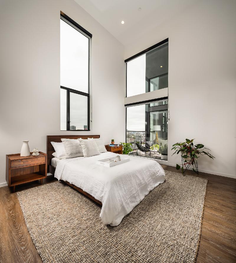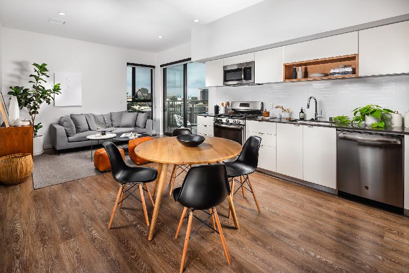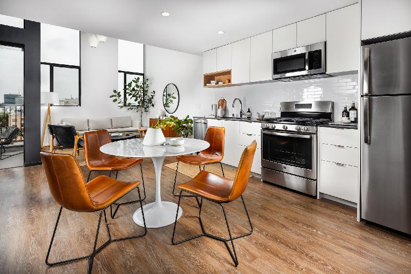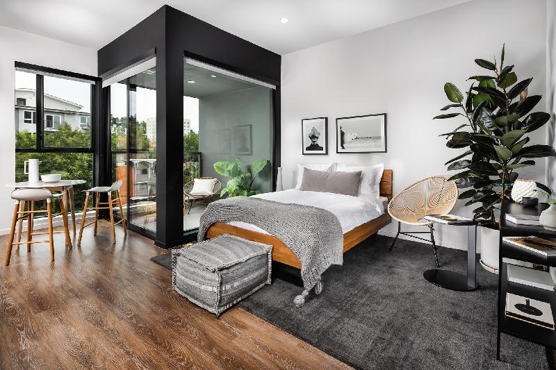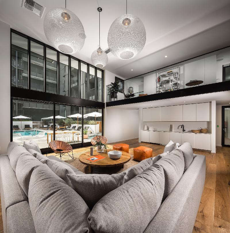 Designed with creative living in mind, our intimate community is limited to just 82 luxury apartments which promotes a sense of privacy and features a second-level pool deck extending from The Recreation Room, an indoor/outdoor space, and The Sky Lounge on the penthouse-level, with sweeping views of Los Angeles from the Hollywood Hills to the downtown skyline.