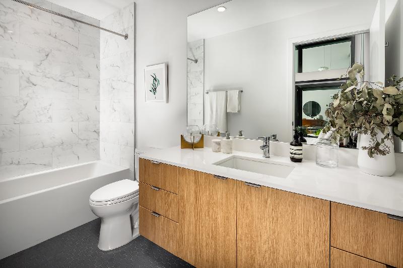 White oak cabinets with quartz countertops