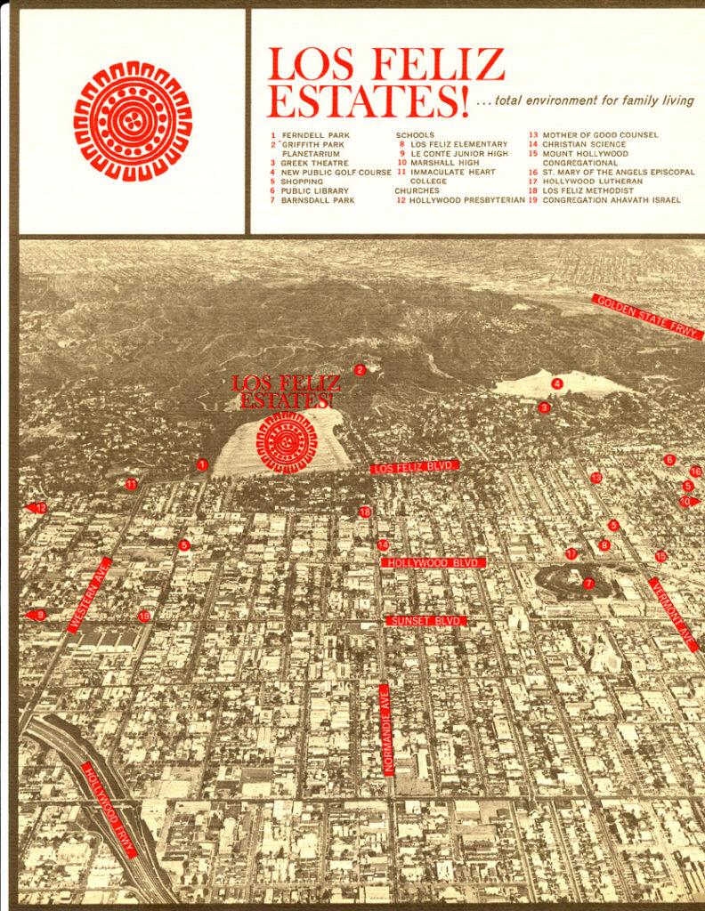 Los Feliz Estates is located in the Hollywood Hills next to The Oaks Neighborhood and Griffith Park. Back in 1960, this tract of homes was referred to simply as “The Estates” by locals. The development is unique among hillside communities in that its streets are straight and configured as single-loaded terraces, which means the homes are situated on one side of the street only. This terraced hillside layout, combined with predominantly one-story homes, provides most of its residents with broad city views.