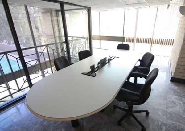 - Glass-walled conference room overlooking pool and Los Feliz Blvd.