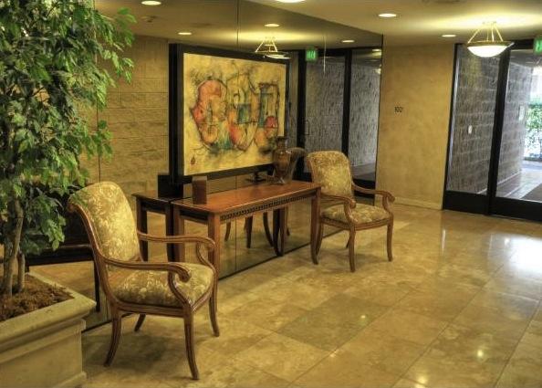 This contemporary style building offers 24 units on six floors, and provides one and two bedroom floor plans from nearly 1,200 square feet to over 2,300 square feet of living space. The lovely gated entrance brings guests and residents into a lush courtyard that winds around into a covered sun room and patio area. The marble lobby welcomes you further as the elevators whisk you away to your private condo space.
