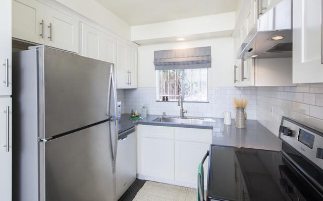 The Maplewoods offers 16 units on 2 floors with one, two and three bedroom layouts ranging from 675 square feet up to 1,300 square feet. This mid-century modern complex has an attractive courtyard welcoming its homeowners into their units with large windows and open layouts. Many of the units have been upgraded with hardwood floors, granite counters and stainless steel appliances.