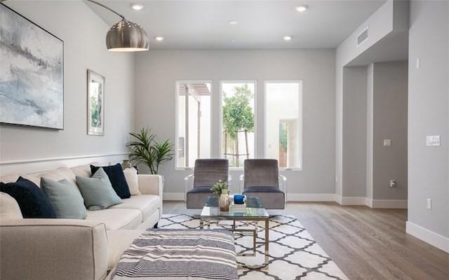 A common elevator links the subterranean garage to the ground level. Each unit also offers private two-car garage with a storage area, plus there’s Ring Doorbell and Nest Thermostat included with each unit. All this is within a short distance to local shops, restaurants, Trader Joe’s and Whole Foods.