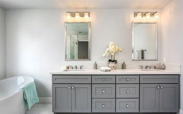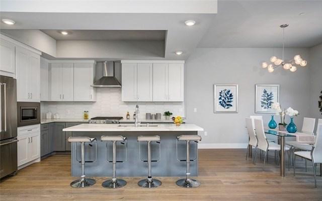 Each townhome offers a unique floorplan. In the heart of the home sits the elegant kitchen with quartz counters, an island, shaker-style cabinets, and stainless steel appliances. The list of features also includes Windsor wood casement windows, a large second-floor laundry room, and a stunning luxe master suite with an opulent en-suite offering a soaking tub paired with a separate shower.