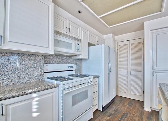 Mayfield Regency offers 9 units on 4 floors with single and multi-level two bedroom plans ranging from 1,200 square feet up to 1,500. They feature formal living room with fireplace, recessed lighting, private outdoor patios, in-unit laundry and master bath with spa tub and separate shower. Many of the units have been upgraded with hardwood floors, granite counters, custom cabinetry and marble baths.