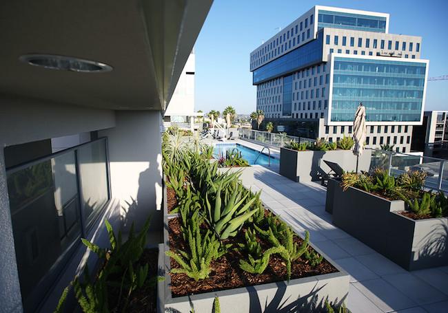 • Roof Top Resort Pool and Sunning Terrace with 360 views of Hollywood Hills, Downtown Los Angeles and Century City