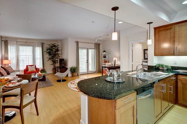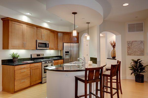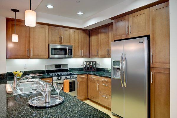 - Large gourmet open kitchens with Maple cabinets, quiet self-closing cabinet doors, granite counters, and under cabinet lighting