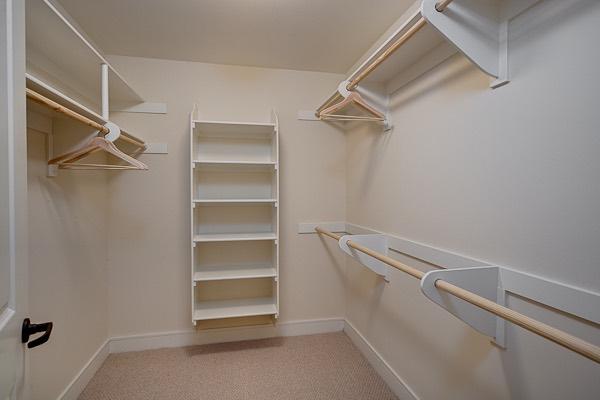 - Spacious walk-in master closets with additional shelving and extra hanging space