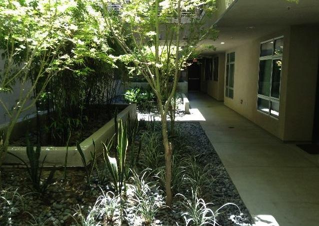 The Courtyard Garden is a tranquil green space open to the sky and located in the center of Metropol. The lush setting was designed to enhance privacy for the residences with select Japanese Maple Trees, Bamboo, rocks and semi-deciduous plants.