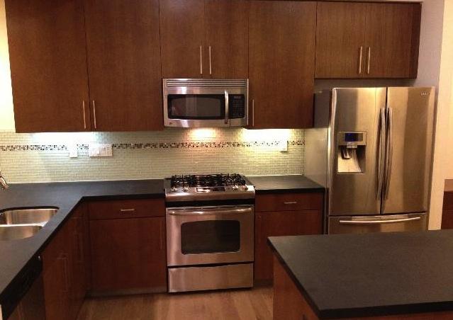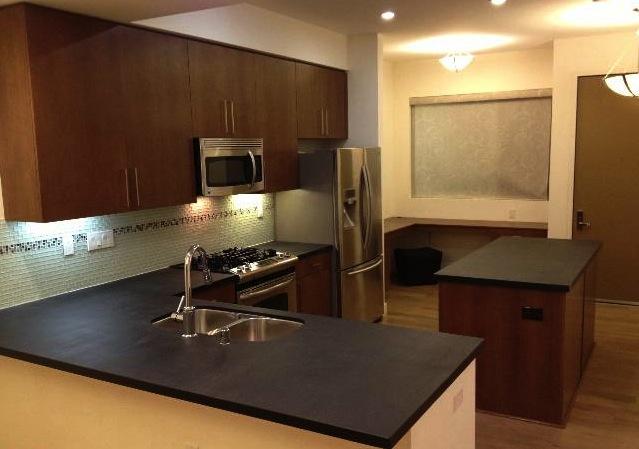 Absolute black granite countertops with waterjet finish in Kitchens