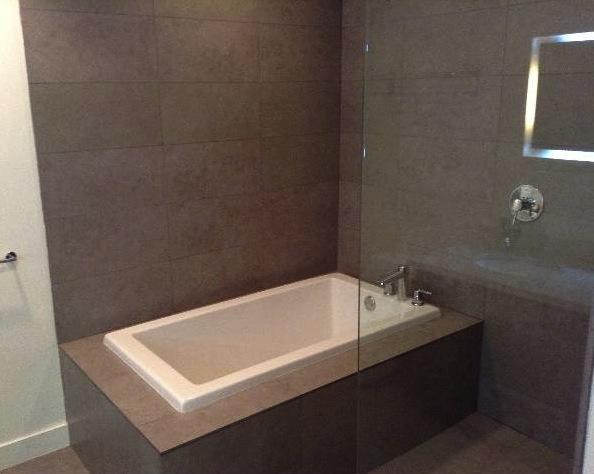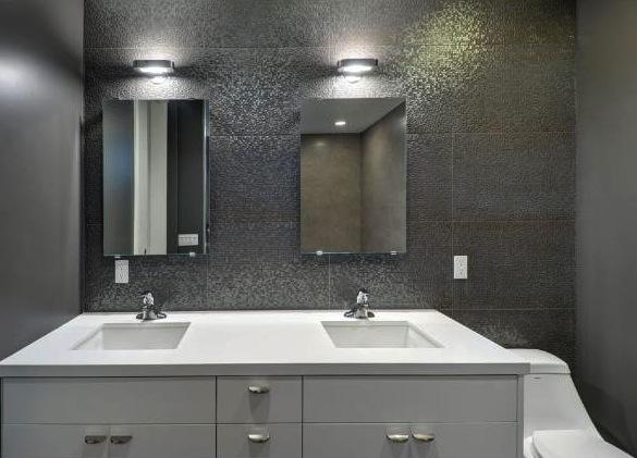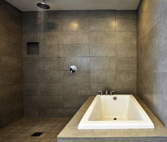 Gray Italian Ceramic Tile in Master and Guest Baths (2 x 2 scored design in all Penthouse Baths)