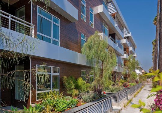 Metropol, built in 2009, is comprised of 41 unique residences that provide serenity within a vibrant and emerging enclave of Hollywood. The buildings architecture balances a modern aesthetic of glass and horizontal bands of metal with a rich facade of natural cedar wood. The 5 diverse floor plans demonstrate a defined approach to living areas as combined with the openness of a loft residence with soaring ceilings, voluminous windows and generous patios.