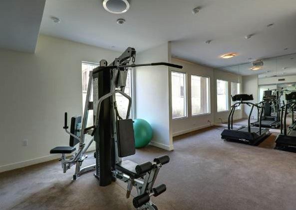 The Fitness Center is geared for a full body work out including state-of-the-art cardiovascular equipment with individual television screens and ipod docking stations, in addition to resistance training equipment. This important space was designed by Kent Walker, AIA, with 25 years of experience in designing premiere health clubs across the United States and Europe, including the Sports Club LA.