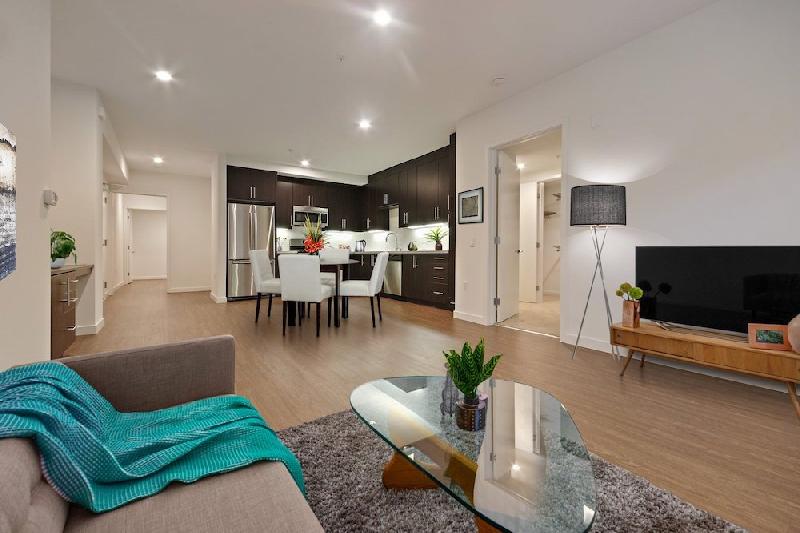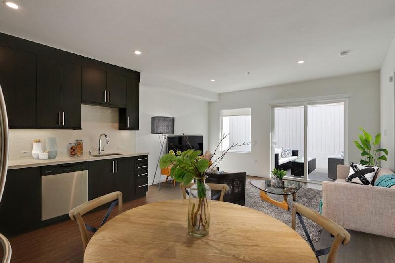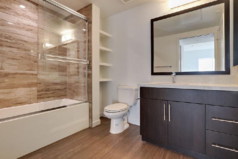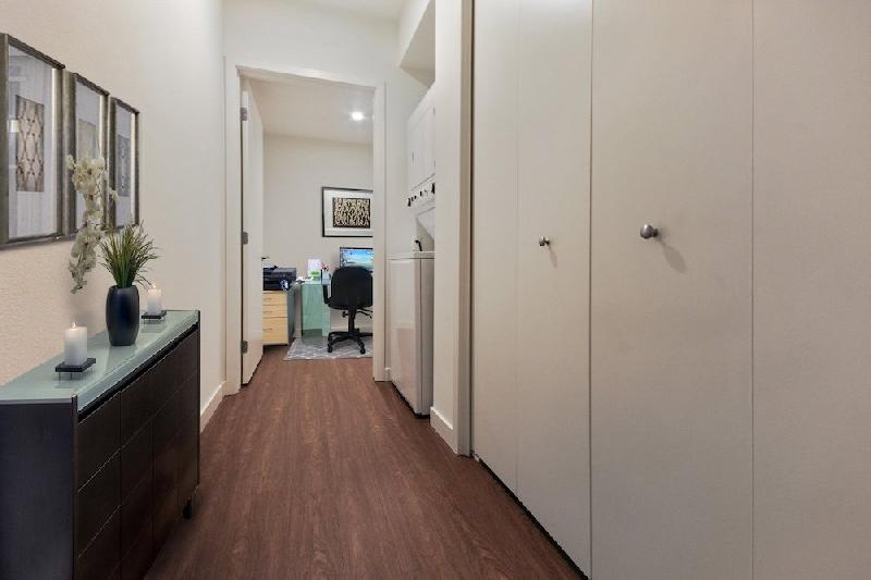 The Micropolitan at Larchmont Village boasts open floor plans with luxury interiors including stainless steel appliances, countertops with full tile backsplash, LED recessed lighting, spacious balconies, dual zone heating and air with mobile friendly thermostats, hardwood flooring, and custom Elfa walk-in closets.