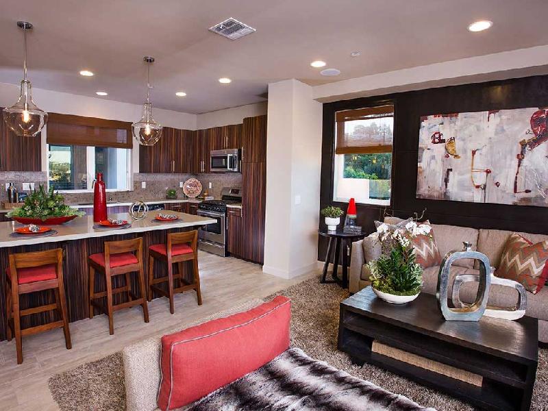 The residences feature staircases with brushed steel railings, modern nickel hardware on interior doors, recessed can lights, solid surface counter tops with Moen chrome faucets in secondary bathrooms, fire sprinklers, decora light switches throughout, pre-wired for Cat 5 and cable in living area and all bedrooms. The kitchens feature contemporary wood grain cabinetry with stainless steel hardware and concealed hinges, Quartz counter tops with six inch backsplash and square edge, Bosch stainless steel appliance package, stainless steel double sink with Moen faucet, spacious kitchen island with elegant quartz waterfall edge, refrigerator area pre-plumb for an ice-maker.