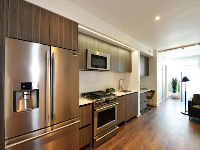 Both cat and dog friendly, these loft, Junior one bedroom and one bedroom Santa Monica apartment homes feature expansive windows, stainless steel kitchen appliances and hardwood-inspired floors. Every unit also is complete with in-unit washer and dryer set.